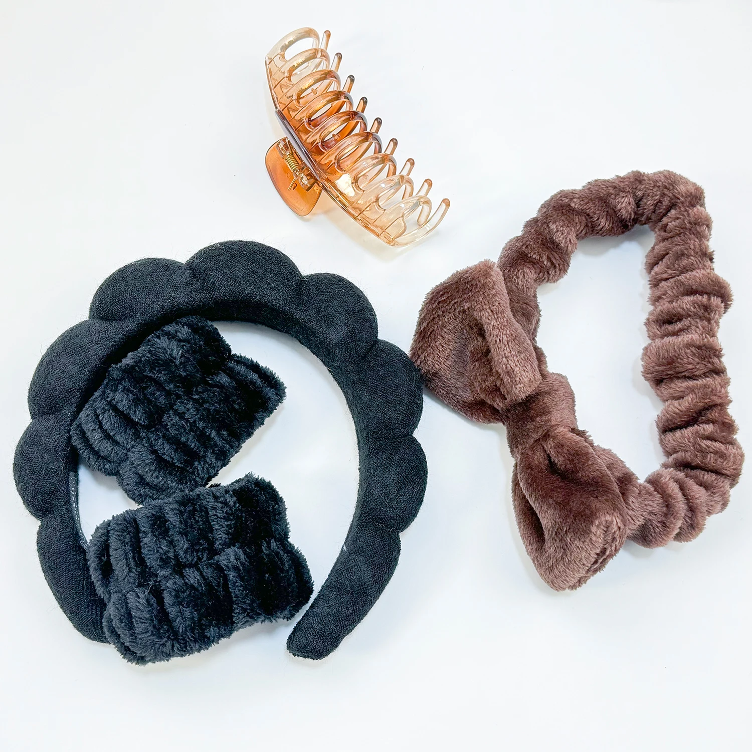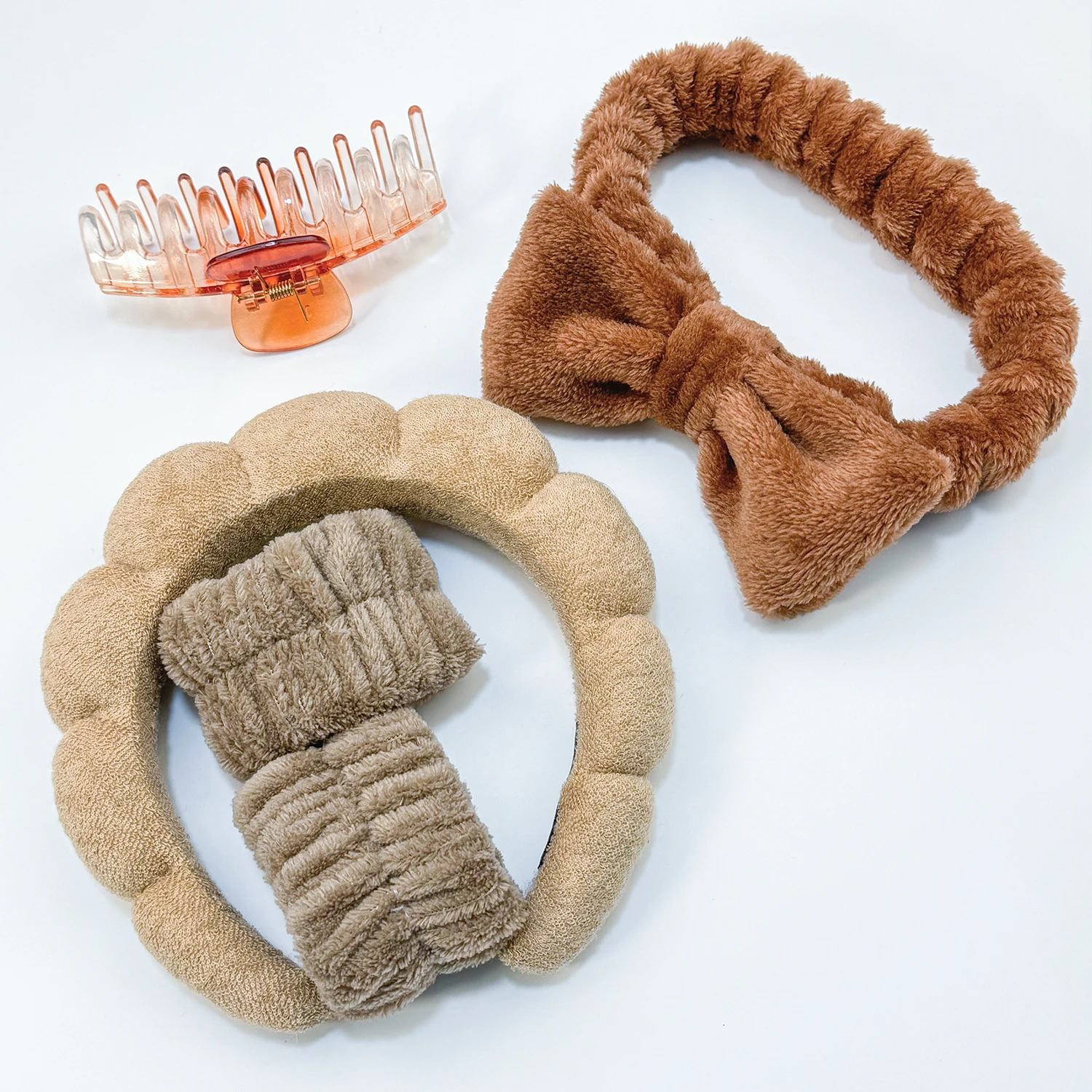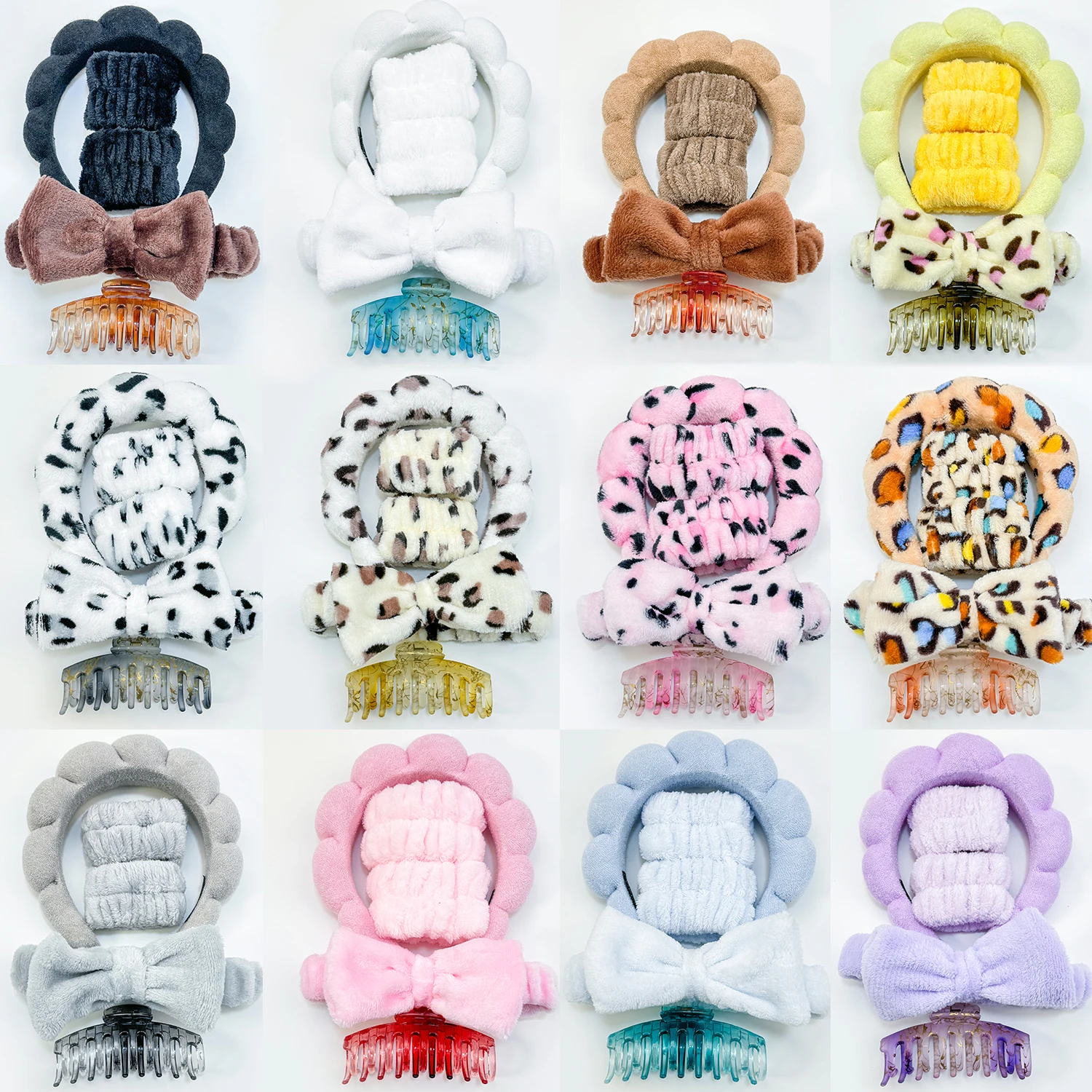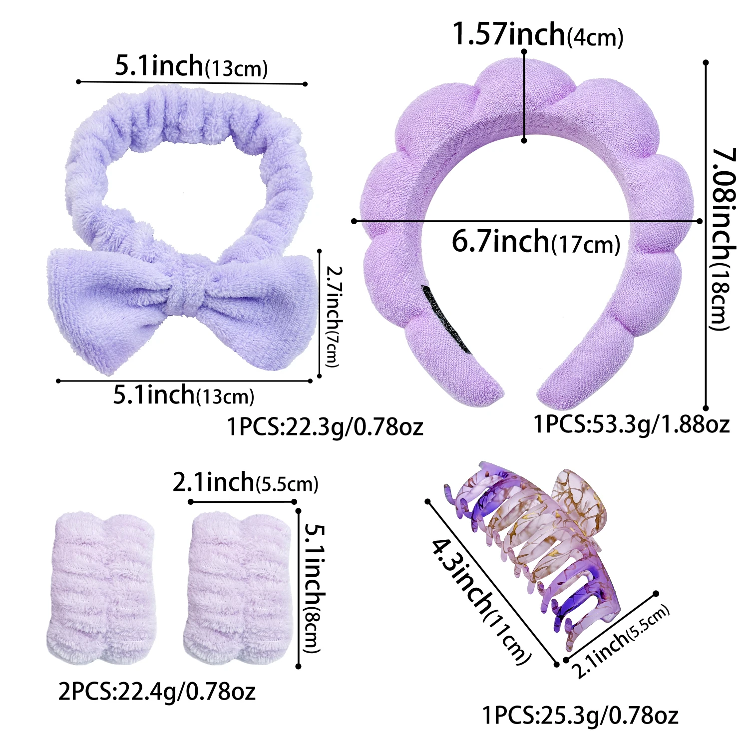5PCS Spa Headband for Washing Face Wristband Set Sponge Makeup Headband Wrist Towels Bubble Hairband Hair Claw Clips Headwear